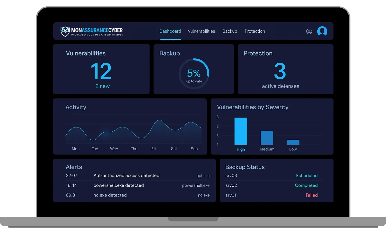 Accédez à Cyber Protect, notre plateforme de cybersécurité avec scans hebdomadaires, audits Cloud et simulations de phishing pour protéger vos systèmes et sensibiliser vos équipes.